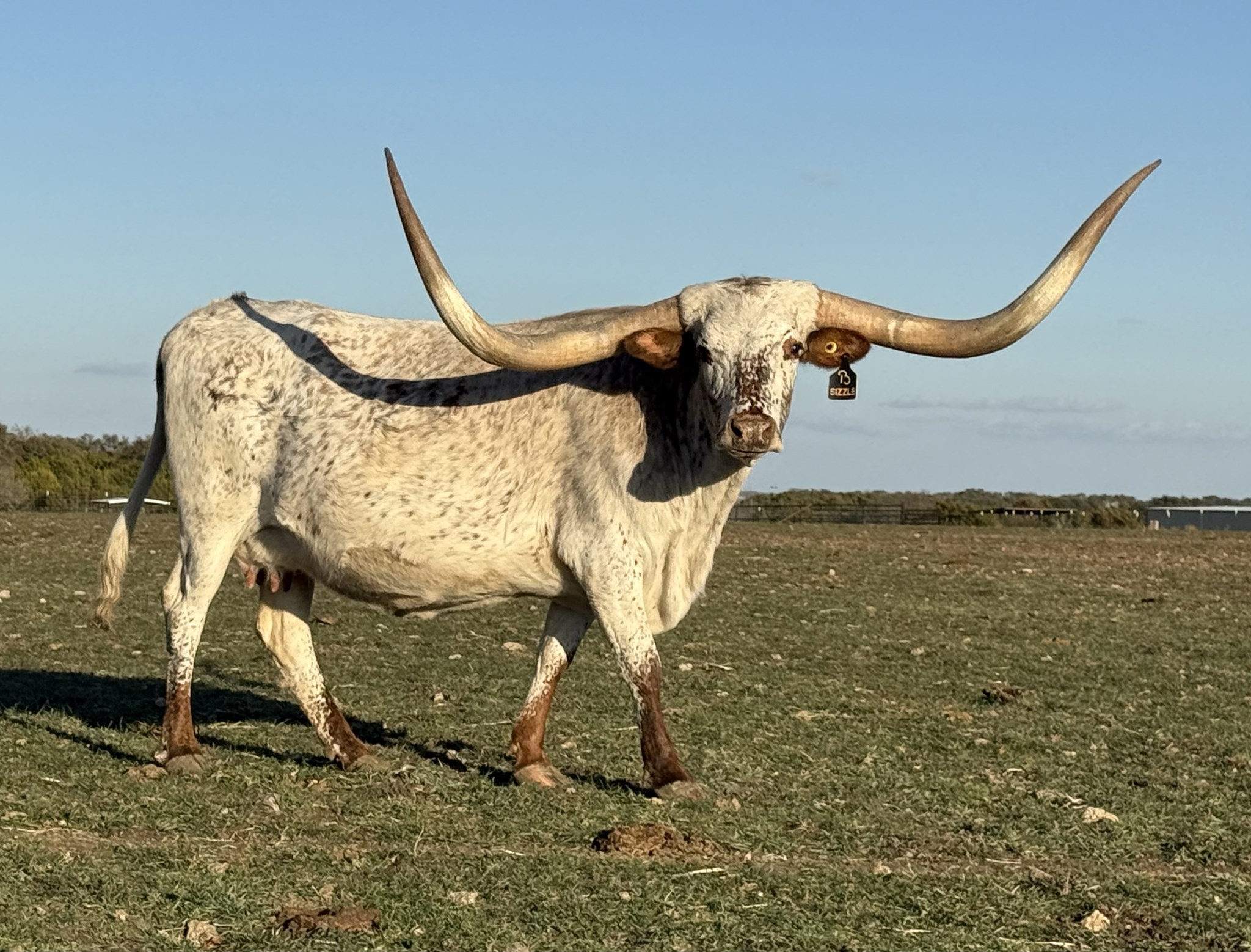 Fantastically marked, young cow with a gentle and calm nature. Sizzle has Cowboy Catchit, 20 Gauge, and AML Grizzle who sold at the 2022 Legends sale for $100,000 in her pedigree. She’s produced two flashy and well made heifers at Buxton Longhorns. We are expecting another solid calf from her this fall sired by award winning 20 Gauge.