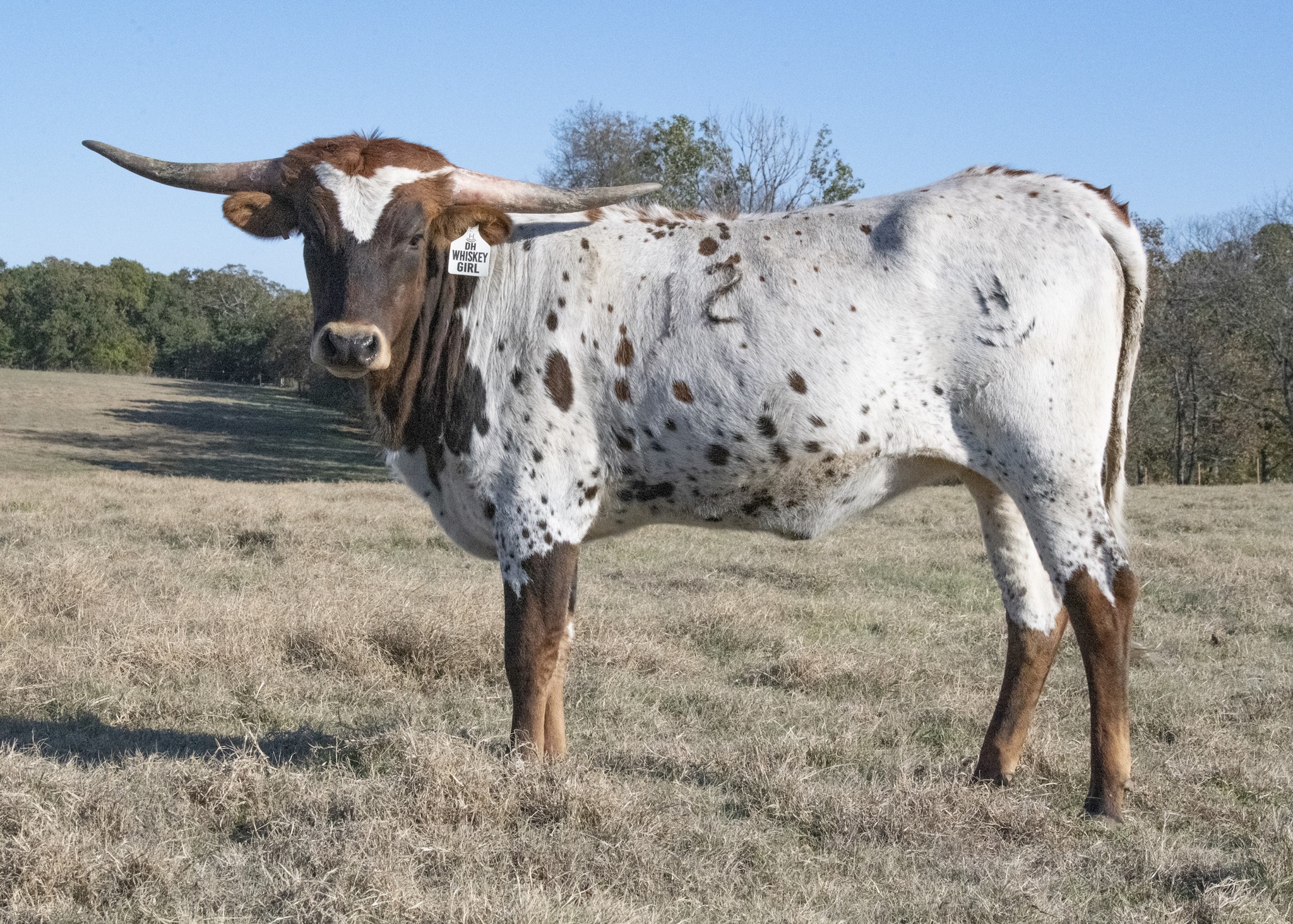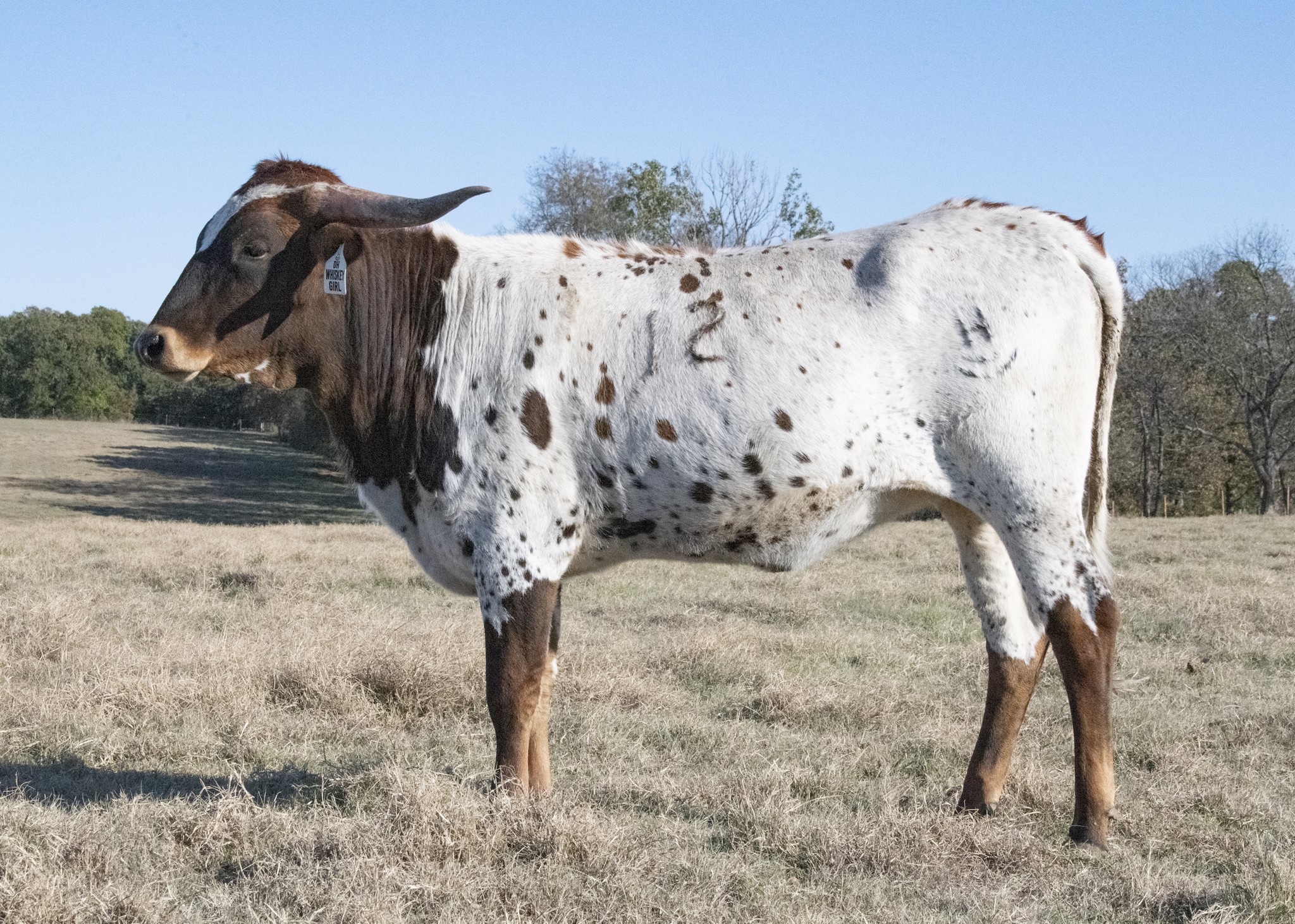 Look at her amazing swept back horns that are starting to twist! Most feminine cow at 🔵🦆. A real beauty queen. Pedigree includes 50/50, Queen B BCB, JP Rio Grande, LLL Rosemary.