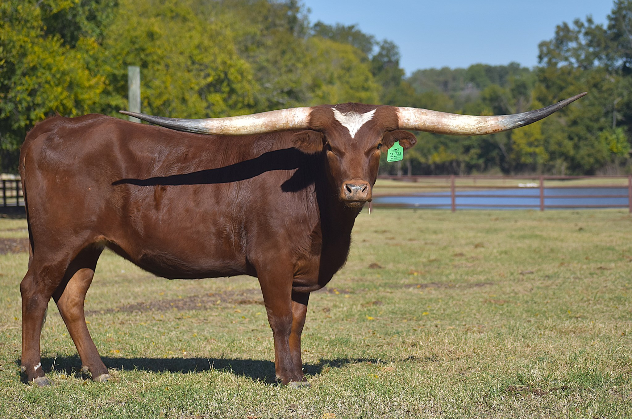 OUR BEST 2022 HEIFER--77'' AT 34m.WILL EASILY BE IN HER 90'S TTT AS A 4 YEAR OLD;VERY STRONG MATERNAL LINE FOR HORN, FERTILITY AND CONFORMATION WITH MONACOS SITTIN TEXAN, SHAMROCK BETTY HORNE AND TEXANA VAN HORNE.. SHE HAD A MARLBORO MAN LM BULL CALF 2/22/25 AND WILL BE LEFT UNEXPOSED AND READY TO BREED TO YOUR BULL OF CHOICE.