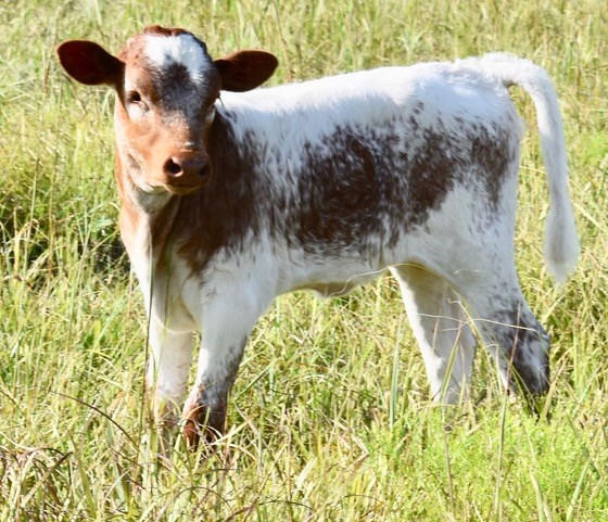 PCC Cactus Jack is the sire to this female. He has won multiple honors including the highly competitive 2023 Legends Grand Champion Bull and the 2023 and 2024 TLBAA Horn Show Case Ultimate bull. He is docile with a great disposition.He was 86’’ TTT on his 3rd birthday and now in his 90's'' TTT in his 4th year. Most importantly, his offspring are the complete package --large framed with great lateral horn direction and very striking color— something which equates to value in this industry.Having Cowboy Tuff Chex and JP Rio Grande in the pedigree only enhances offspring potential. ( Pace/Gilliland/Manning/Loomis)