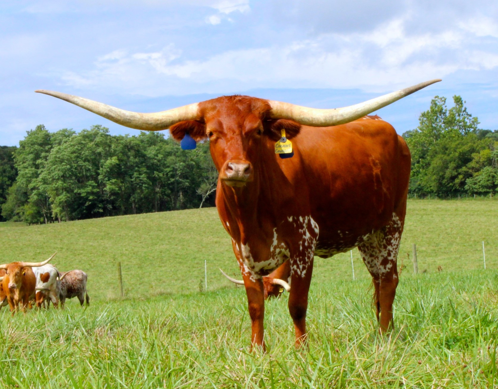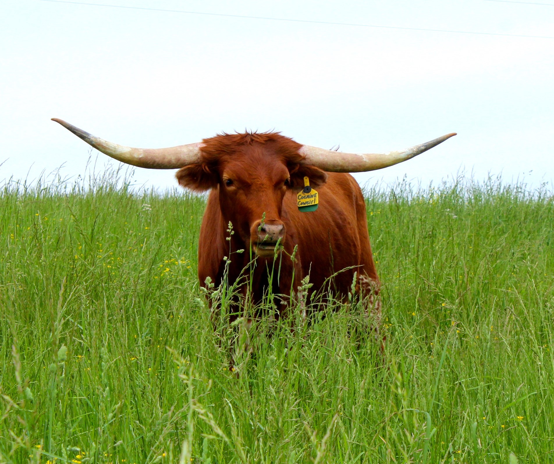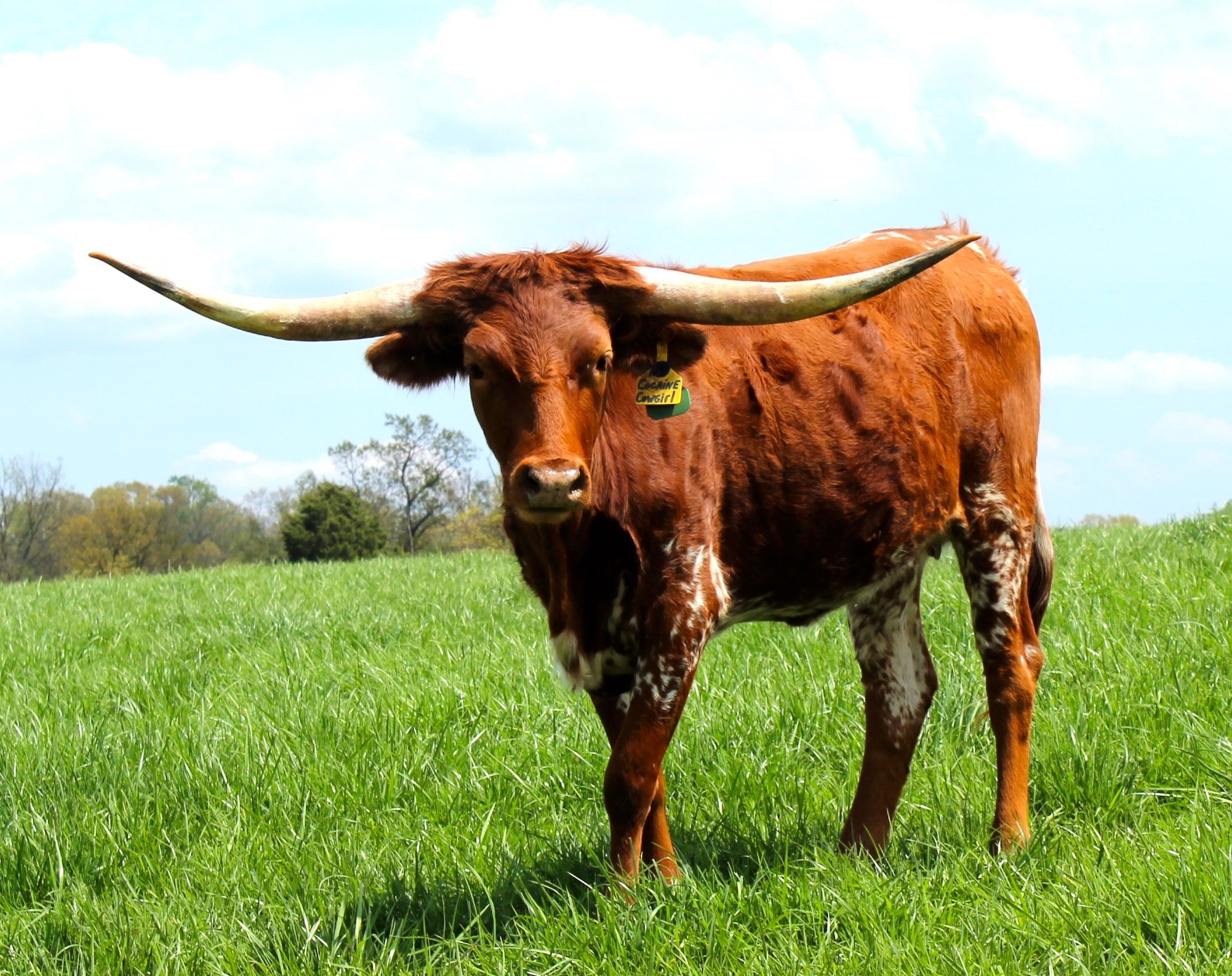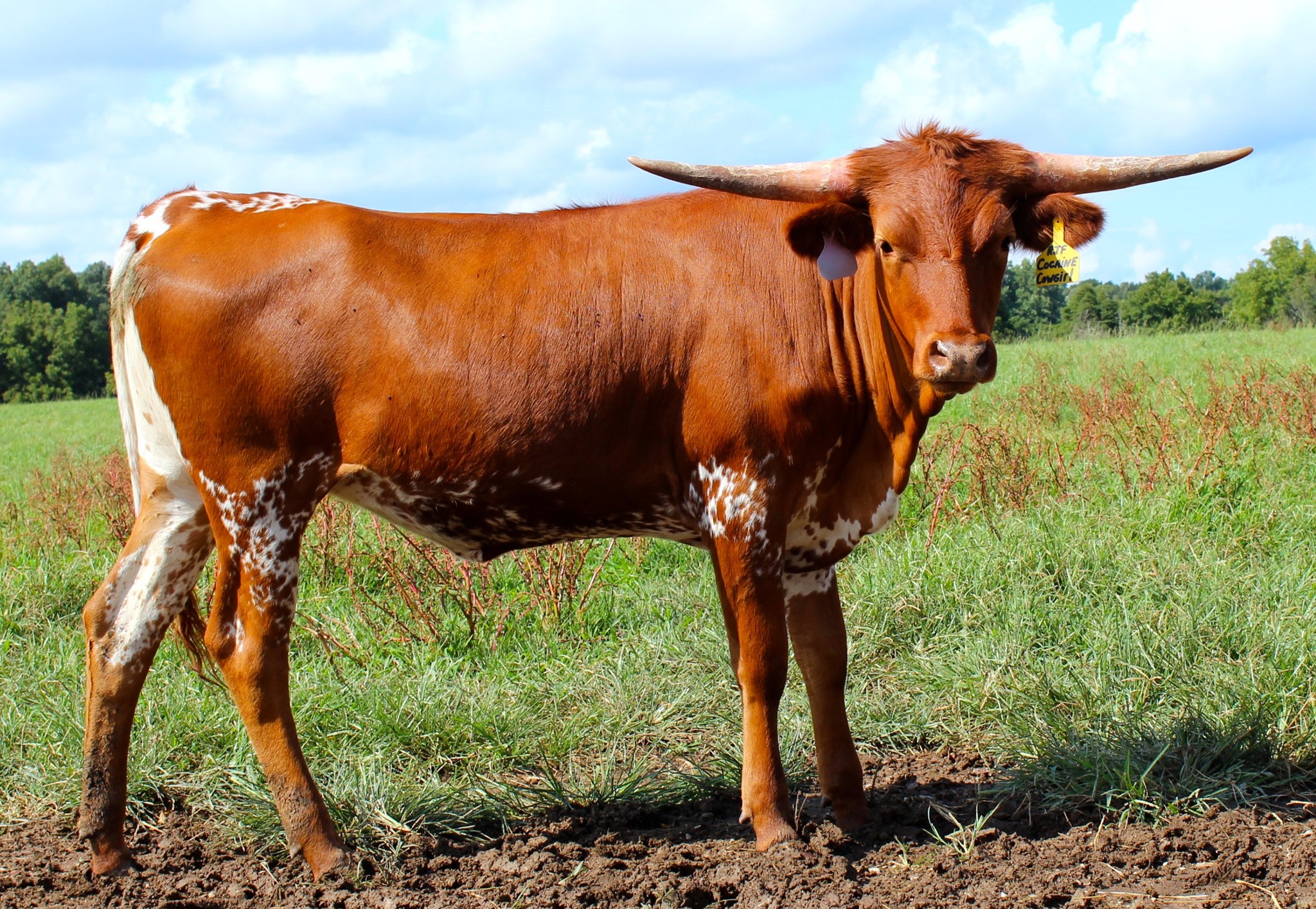 This beautiful lady is stacked with powerful bloodlines, JUST TAKE A LOOK, she is built with great conformation, striking color, has a super sweet disposition, great milker, and has a beautiful lateral horn set. Her 101"TTT Dam sold for $280,000 at the 2021 Hudson/Valentine Fort Worth Sale, her daughter HL Adored has reached over 101"TTT at 5 years old and sold for $102,000, and her granddaughter HL Cherished reached 85"TTT at 3 years old and sold for $120,000. This family is a horn producer of well made animals with some of the most recognizable pedigrees in the industry. We are excited about Cowgirl and enjoy seeing her in our pasture.